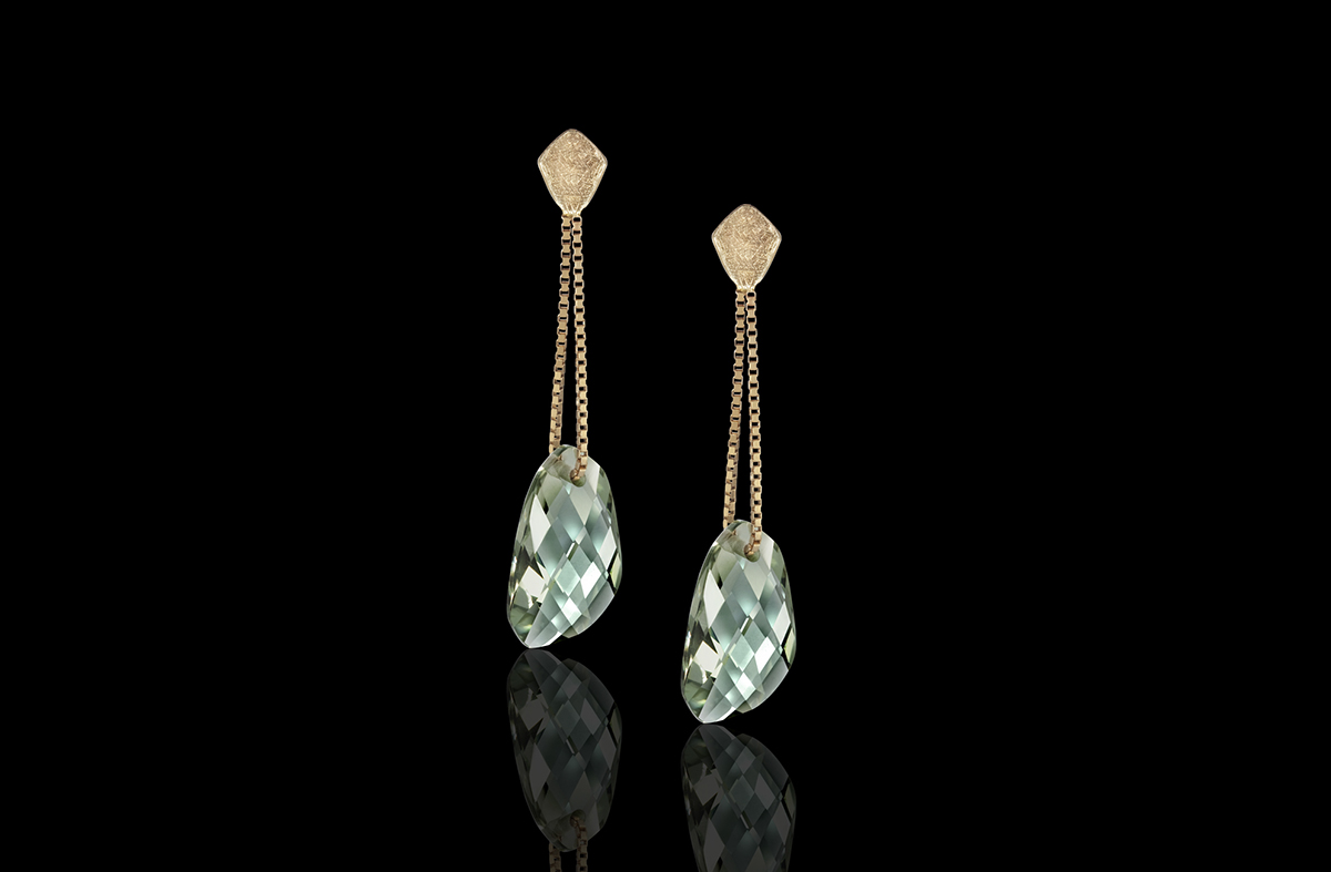עגילים בזהב צהוב 18K משובצים אמטיסט ירוק ויהלומים